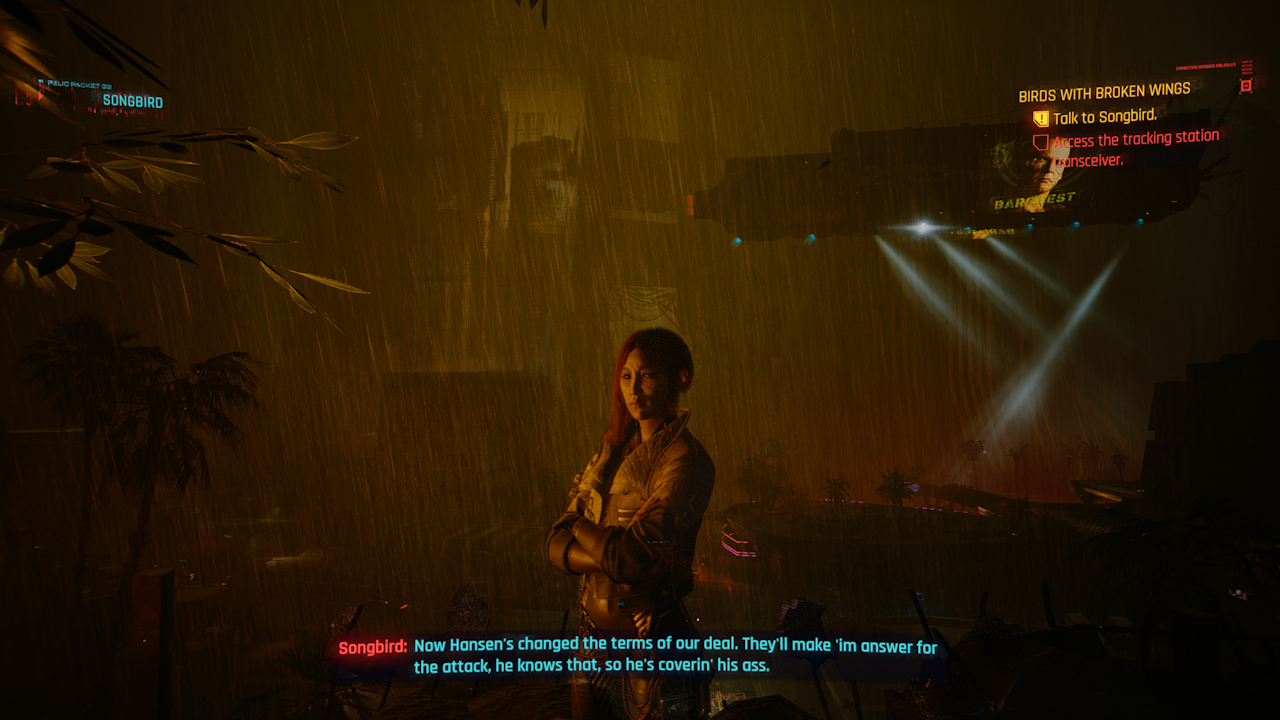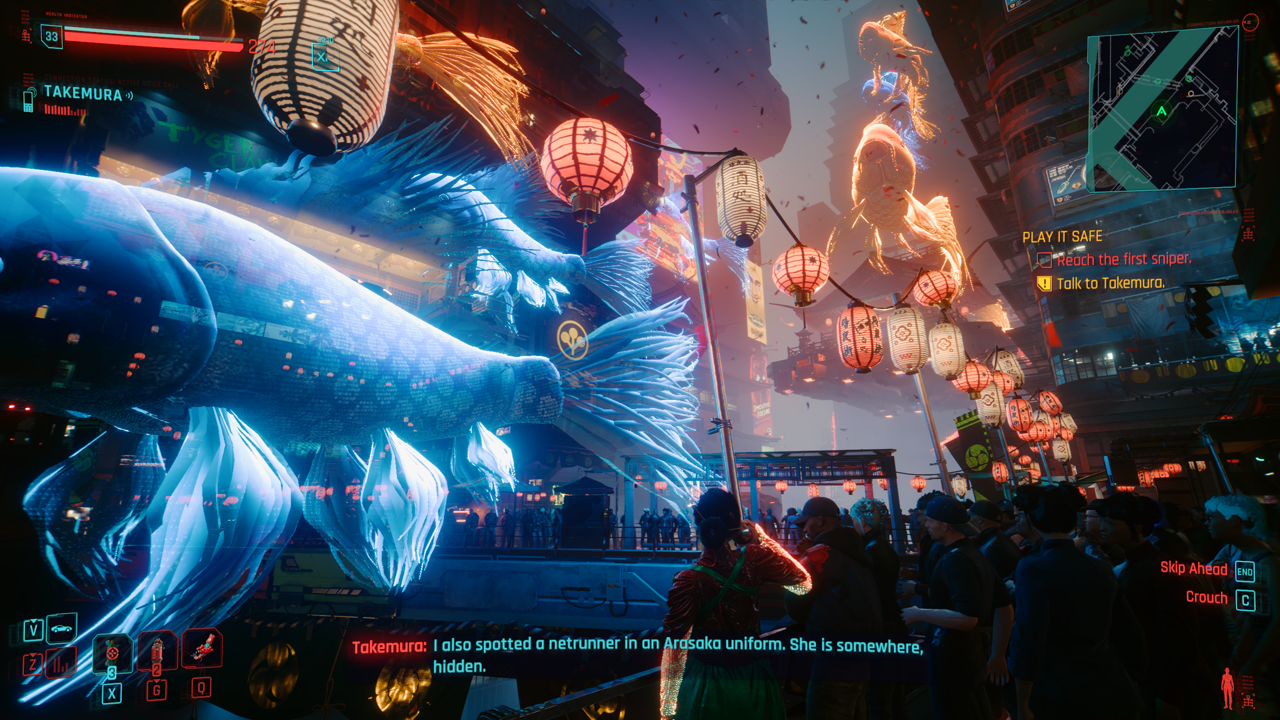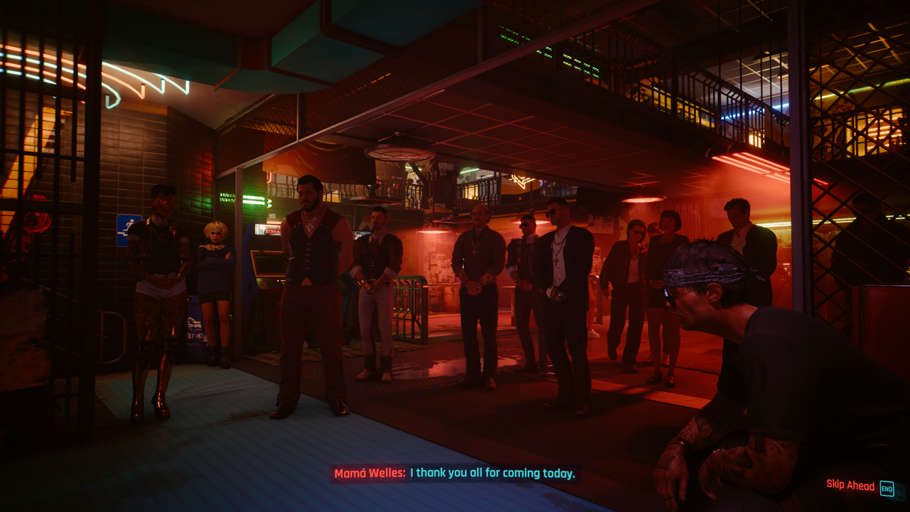 Cyberpunk 2077 is an action role-playing video game developed by CD Projekt Red and published by CD Projekt. The story takes place in Night City, an open world set in the Cyberpunk universe. Players assume the first-person perspective of a customisable mercenary known as V, who can acquire skills in hacking and machinery with options for melee and ranged combat. The story follows V's struggle as he deals with a mysterious cybernetic implant that threatens to overwrite his body with the personality and memories of a deceased celebrity only perceived by V; the two must work together if there is any hope to separate the two and save V's life.